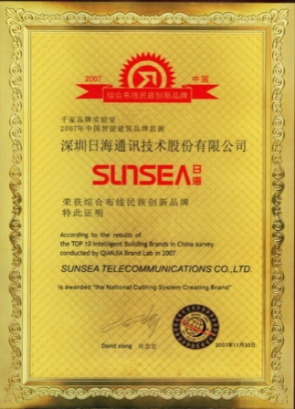 2007年11月29日~30日,金年会公司智能综合布线受邀前往上海光大会展中心酒店,参加由千家网筹办的“2007年第八届中国国际建筑智能化峰会暨颁奖典礼”,获得了“布线民族创新品牌”特别奖项。